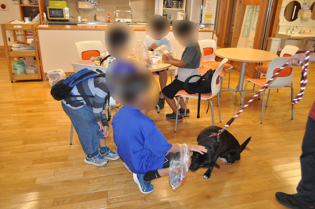 施設が飼っている保護犬「ナオトラ」は子ども達に大人気で、「ナオトラ」も子ども達とたくさん触れ合うことができ、嬉しそうでした。
