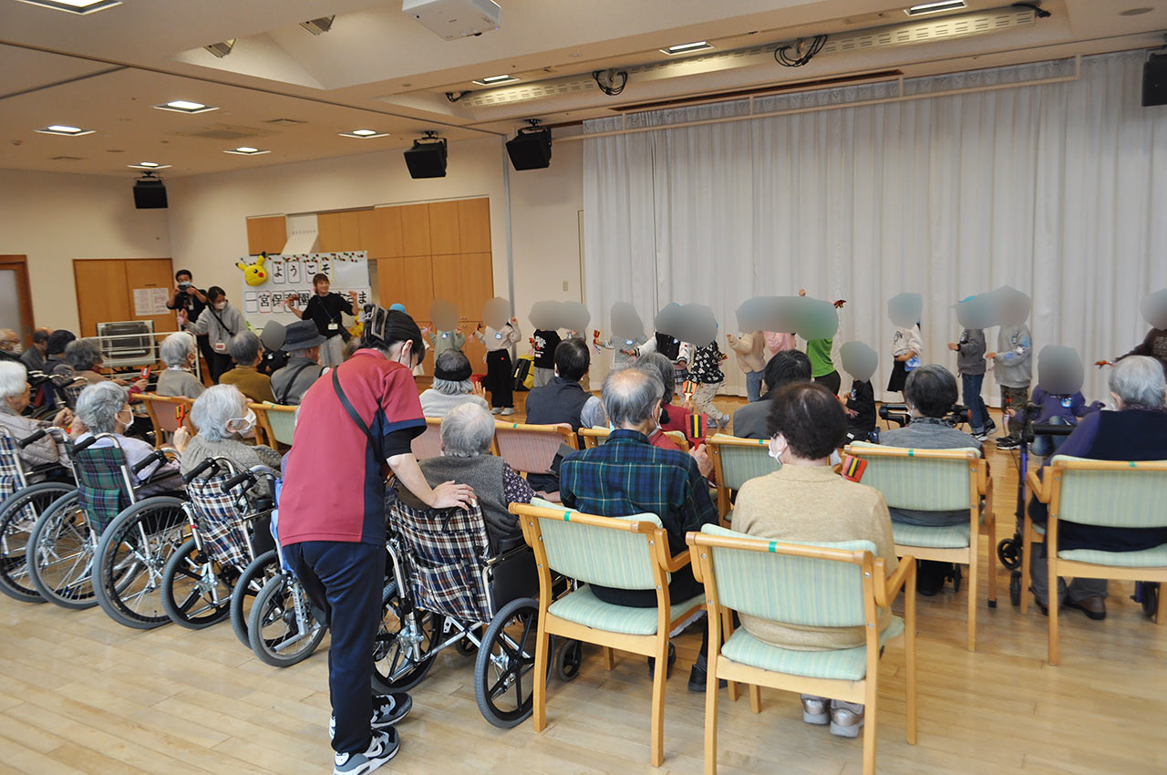 元気いっぱいでかわいらしい園児たちと交流ができ、入居者や利用者の方々もいつも以上に会話が弾み、楽しい時間を過ごせました。