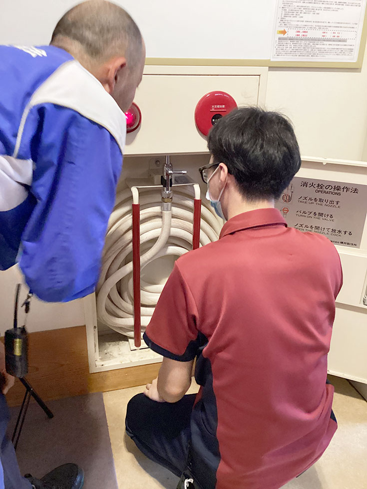 南海トラフ地震の直後に、建物火災が発生したことを想定し訓練を行いました。