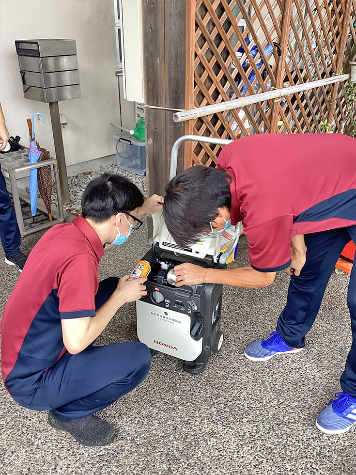 また、放水訓練、小型非常用発電機の取り扱い訓練を行いました。