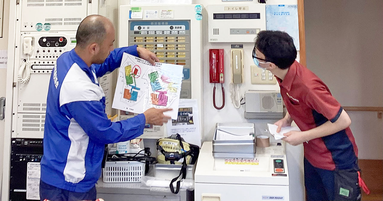 今回は、夜間想定訓練となり、夜勤者、宿直者の限られた人数での初動対応確認を迅速に取組み、その後の総評で課題分析等を行いました。