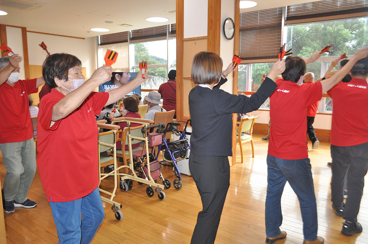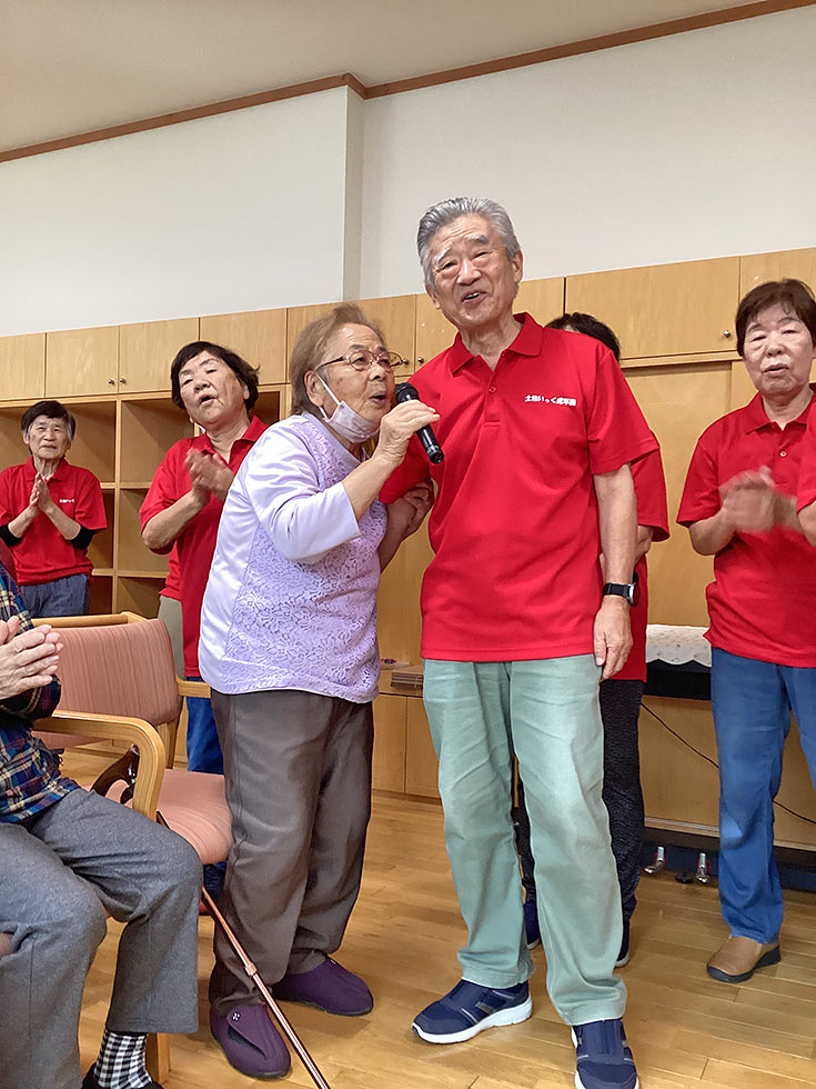 よさこい鳴子踊りやカラオケを披露してくださり、デイサービスのご利用者様と一緒に歌われ、楽しい時間を過ごさせて頂きました。